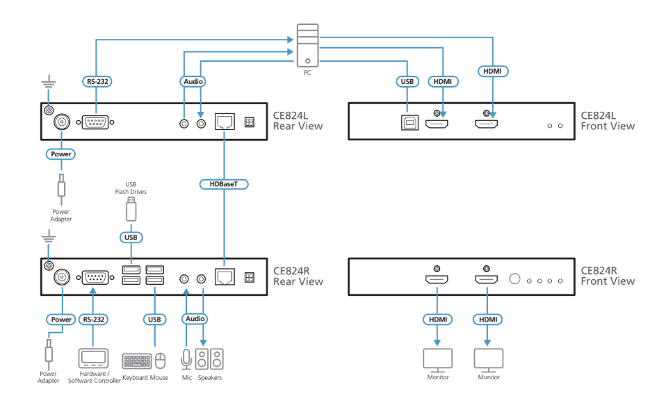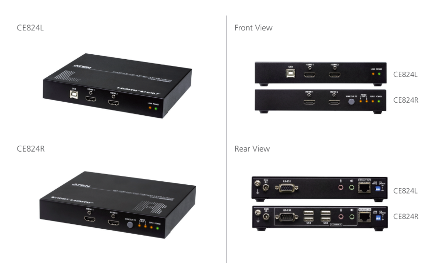Aten CE824 USB HDMI Dual View HDBaseT™ 2.0 KVM Extender