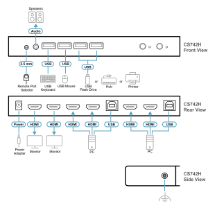 - 1x CS742H 2-Port USB 4K HDMI Dual Display KVMP™ Switch