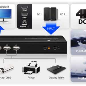 Hỗ trợ 2 máy tính (2 cổng KVM) cùng lúc, chia sẻ bàn phím, chuột và các thiết bị ngoại vi USB.