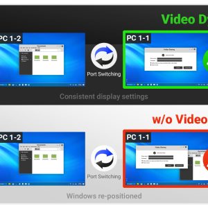 Công nghệ độc quyền Video DynaSync™ giúp bảo toàn cấu hình cửa sổ, biểu tượng khi chuyển đổi qua lại giữa hai máy – đảm bảo trải nghiệm mượt mà.
