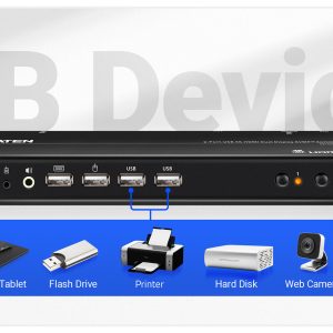 ATEN CS742H giúp bạn điều khiển đồng thời 2 máy tính với 1 bàn phím và 1 chuột, sử dụng 2 màn hình HDMI chuẩn 4K60Hz, hỗ trợ Windows/Mac/Linux – lý tưởng cho văn phòng, studio, đa nhiệm.